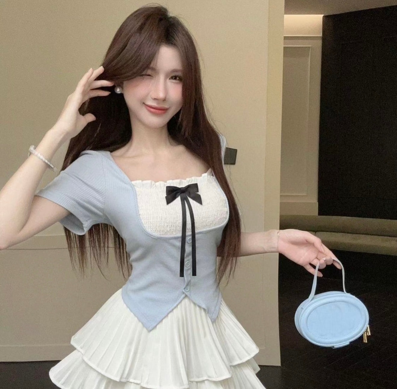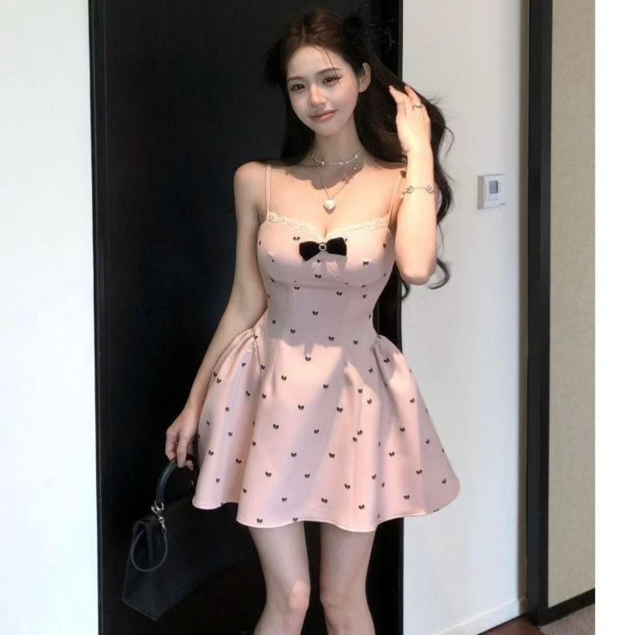 【新款】纯欲法式甜辣妹连衣裙2件套小众蝴蝶结~